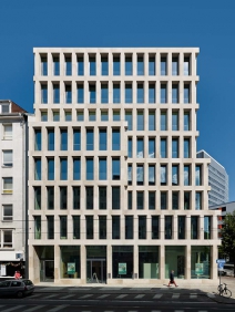 „Das innerstädtische Büro- und Geschäftshaus überzeugt trotz großer Höhe mit einer skulpturalen Eckausbildung, die in die Nachbarbebauung hinein vermittelt. So entsteht trotz der rigiden Fassadengestaltung ein lebhaftes Spiel der Formen unter dem Licht. Der skulpturale Ansatz wird durch die Tiefe der Fensterleibungen und die Reduzierung der Materialien auf Glas und Steinbeton.“