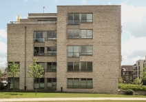 Die fünfgeschossige Gebäudegruppe mit 57 Eigentumswohnungen war nicht nur das erste in dem neuen Quartier errichtete Objekt, sondern bildet auch stadträumlich das Entree der Siedlung. Für den Architekten war es wichtig, sich an diesem besonderen Ort gegen den historischen Wasserturm architektonisch zu behaupten.