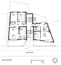 Galten die neuen Häuser im „Milchquartier“ in den siebziger Jahren noch als Muster für eine Haltung der „kritischen Rekonstruktion“, der Anpassung an den historisch gewachsenen Ort, so zeichnete sich mit diesem Gebäude in gleicher Umgebung ein Paradigmenwechsel ab. Der Entwurfsverfasser setzte sich bewusst „von den im Quartier sonst üblichen Gestaltungsprinzipien“ ab und orientierte sich an der klareren Formensprache der Architektur der dreißiger und fünfziger Jahre.
