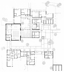 Kirche und Gemeinderäume sind um einen Innenhof gruppiert. Der Sakralbau sticht mit seinem Satteldach aus der Gruppe der Flachdachbauten heraus. Das Dach ist an der Westseite weit heruntergezogen. Am Südgiebel wird in der Verlängerung der Dachschräge ein bescheidener Glockenturm entwickelt. Die sichtbar gelassene konstruktive Struktur aus Beton und Ziegelausfachungen bestimmen das Erscheinungsbild.
