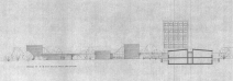 _Zwischen diesen vier Pavillons lagen der „Marktplatz„ (die gemeinsam zu nutzende Pausenhalle) und ein Innenhof. Deutlich davon abgehoben befand sich im Westen des Komplexes ein fünfgeschossiges, zweibündig erschlossenes Gebäude in dem die unterschiedlichen Spezialklassenräume vom Zeichensaal über den Physiksaal bis zur Lehrküche untergebracht waren. Die Nutzungsvielfalt spiegelt sich auch im unregelmäßigen Muster der Fassade wider.